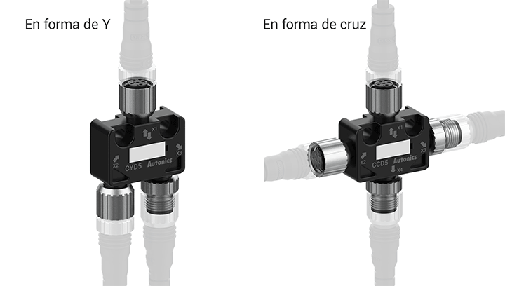 Los modelos tipo cable conector se pueden conectar a conectores de rama en forma de Y o de cruz y a cables de extensión para una instalación flexible. Cuando se conectan a los conectores en forma de cruz, se proporciona una salida auxiliar para la supervisión de múltiples interruptores de seguridad sin contacto.