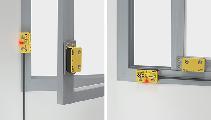 Los interruptores de seguridad para puertas sin contacto serie SFN usan una detección de tipo magnético para controlar la apertura y el cierre de las puertas. El controlador dedicado permite la conexión múltiple de hasta 30 unidades. Los interruptores pueden instalarse vertical u horizontalmente, y también pueden instalarse desde ambos lados.