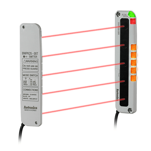 Los sensores de área serie BWPK cuentan con un cuerpo plano y compacto (10 mm) hecho de plástico PC / ABS de alta resistencia (policarbonato / acrilonitrilo butadieno estireno). Los indicadores de selección en el emisor y el receptor permiten una clara identificación del estado del trabajo. La instalación y el cableado se hacen más fáciles con la eliminación del cableado de sincronización. Los interruptores DIP están disponibles para alternar entre varias funciones y modos, incluido el modo de distancia de detección larga / corta, la función de prevención contra interferencia mutua, las opciones de modo Light ON/Dark ON e indicador de selección ENCENDIDO / INTERMITENTE.
