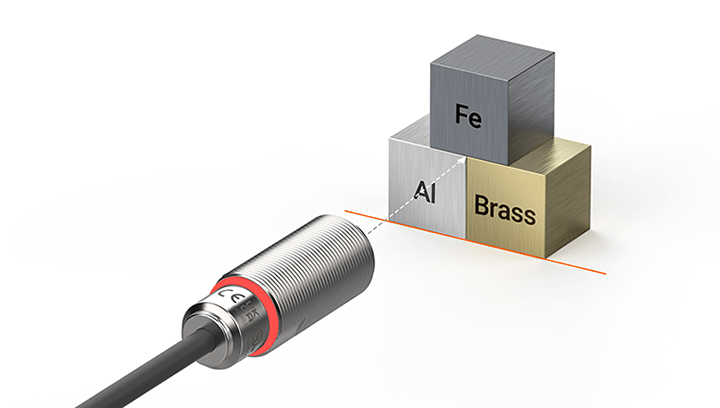 Los sensores con factor de reducción 1 garantizan distancias de detección iguales para hierro y aluminio. Esto permite una detección estable en líneas con materiales de hierro y aluminio.