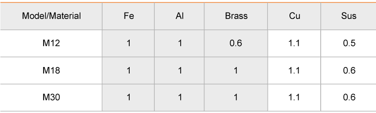 Los modelos M18 y M30 ofrecen detección de factor 1 para aluminio, hierro y latón.