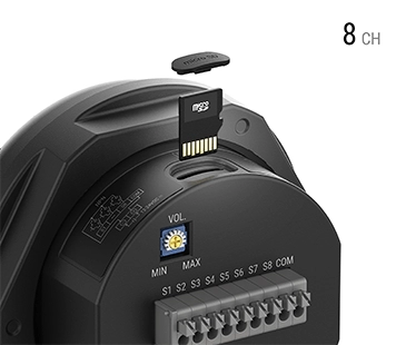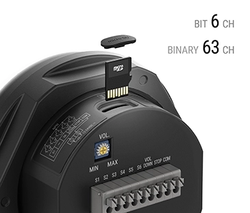 La serie B7VA cuenta con memoria interna, que permite usar sonidos de alarma integrados sin necesidad de ajustes adicionales, y memoria externa, que permite al usuario insertar sus propias voces y melodías, además de los sonidos de alarma integrados. La memoria externa admite 16 fuentes de sonido individuales por canal.